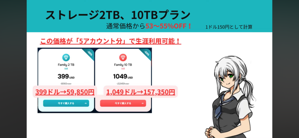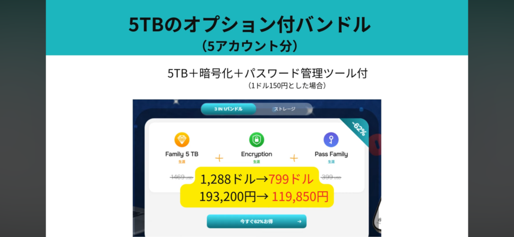 買い切りで家族全員が使えるクラウドを手に入れる絶好の機会です。