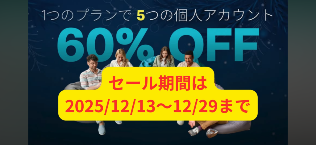 今回のクリスマスセールは、特に「ファミリープラン」が大幅割引の対象となっており、買い切り型クラウドを家族で使いたい人には絶好の機会です。